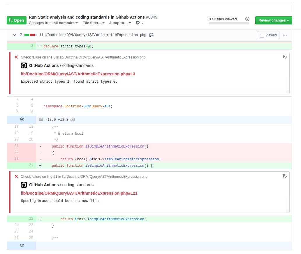 [PR #8049] Run Static analysis and coding standards in Github Actions #10782