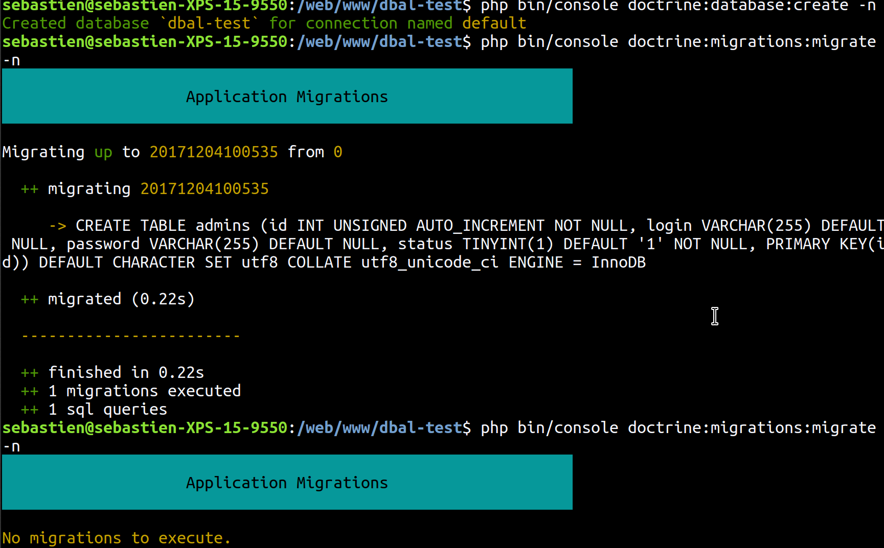 And one init migration https://github.com/Bukashk0zzz/dbal-test/blob/master/src/Migrations/Version20171204100535.php