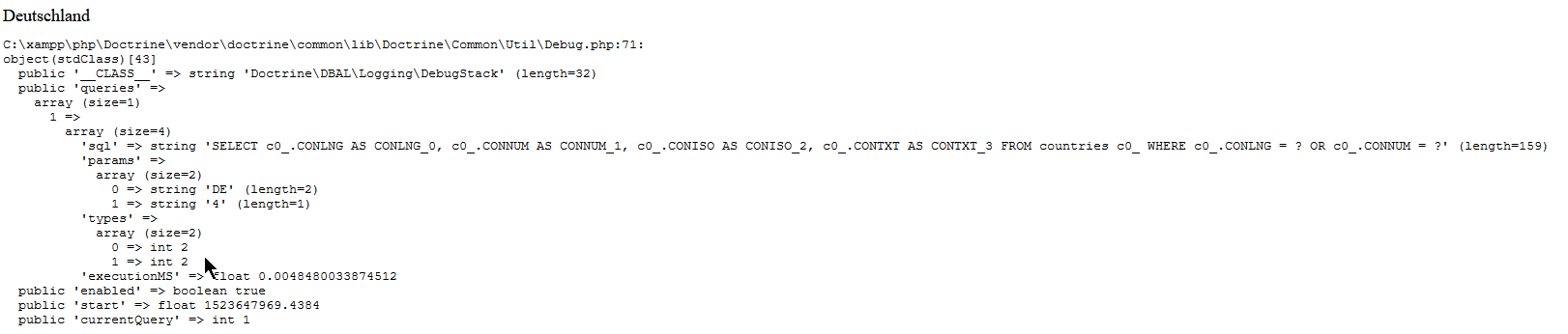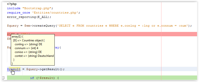 $query = $em->createQuery('SELECT e FROM countries e WHERE e.conlng = :lng AND e.connum = :num');$NUM = 4;result ->